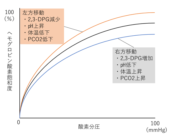 Hbと酸素の親和性には次のような特徴があります(酸素解離曲線)。
